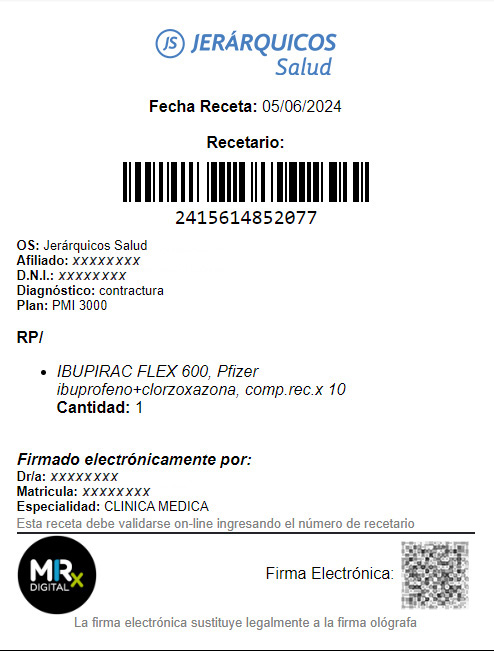 Las únicas recetas electrónicas válidas para los socios de Jerárquicos Salud serán las emitidas a través de Mis RX.